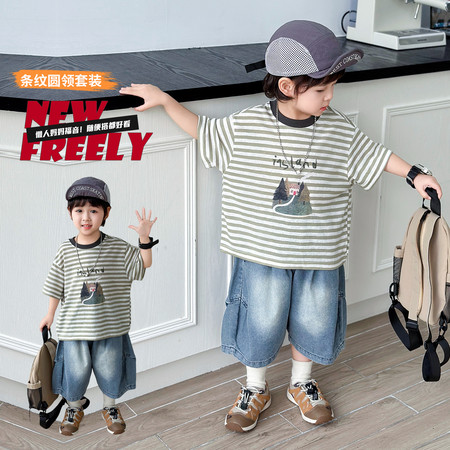 1*9下载“xdm-1900林间小屋条纹短袖套装”图片包